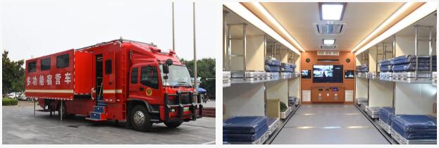在宿营车上,得知该系列车辆产品拥有指挥、宿营、饮食、卫浴、供电和净水等全套保障,一个系列就是一个小型营地。刘金志感慨道,要是每个市都能配备一套这样的装备,我们的应急救援能力就会得到大幅提升。