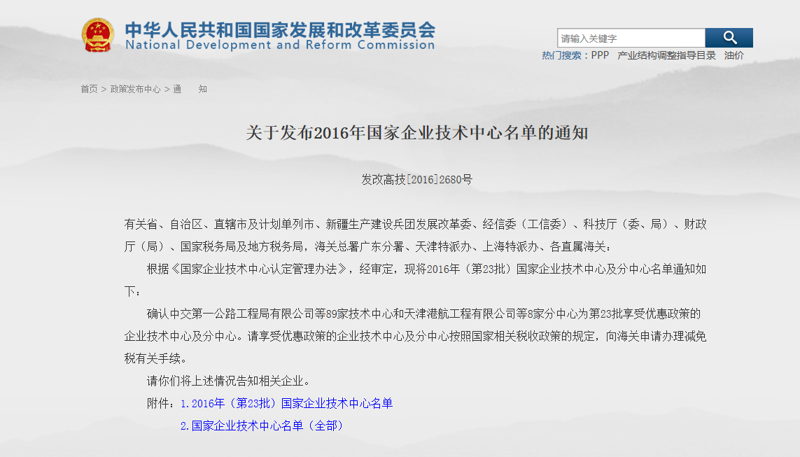 根据中华人民共和国国家发展和改革委员会、中华人民共和国科学技术部、中华人民共和国财政部、中华人民共和国海关总署、国家税务总局联合下发的《关于发布2016年国家企业技术中心名单的通知》(发改高技[2016]2680号),河南mk(中国)集团旗下mk(中国)电气技术中心被认定为2016年(第23批)国家企业技术中心。